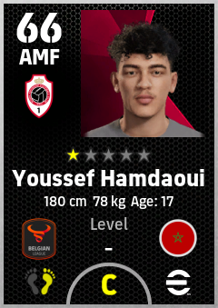 . Youssef Hamdaoui is a Attacking Midfielder footballer from Morocco who plays for Antwerp Rw in eFootball 2026.