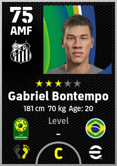 . Gabriel Bontempo is a Attacking Midfielder footballer from Brazil who plays for Santos Fc in eFootball 2026.