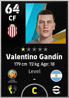 . Valentino Gandín is a Center Forward footballer from Argentina who plays for Barracas Rb in eFootball 2026.