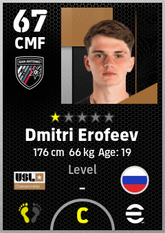 . Dmitri Erofeev is a Center Midfielder footballer from Russia who plays for San Antonio Fc in eFootball 2026.