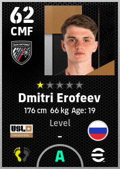 . Dmitri Erofeev is a Center Midfielder footballer from Russia who plays for San Antonio Fc in eFootball 2026.