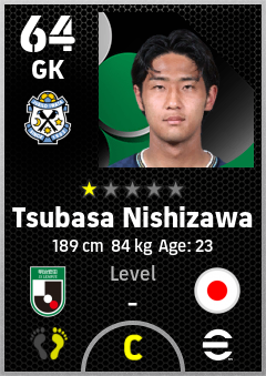 . Tsubasa Nishizawa is a Goalkeeper footballer from Japan who plays for Jubilo Iwata in eFootball 2026.