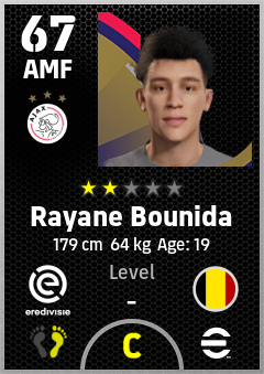 . Rayane Bounida is a Attacking Midfielder footballer from Belgium who plays for Ajax in eFootball 2026.
