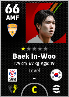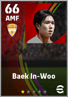 . Baek In-Woo is a Attacking Midfielder footballer from Korea Republic who plays for Ulsan B in eFootball 2026.