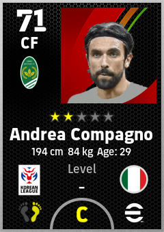 . Andrea Compagno is a Center Forward footballer from Italy who plays for Jeonju G in eFootball 2026.