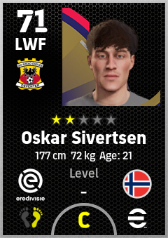 . Oskar Sivertsen is a Left Wing Forward footballer from Norway who plays for Go Ahead Eagles in eFootball 2026.