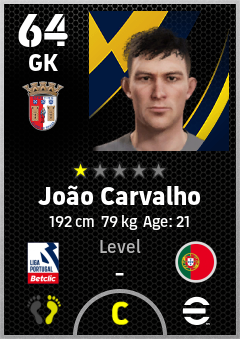 . João Carvalho is a Goalkeeper footballer from Portugal who plays for Sporting Braga in eFootball 2026.