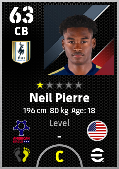 . Neil Pierre is a Center Back footballer from United States who plays for Philadelphia By in eFootball 2026.
