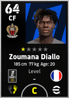 . Zoumana Diallo is a Center Forward footballer from France who plays for Ogc Nice in eFootball 2026.