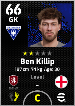 . Ben Killip is a Goalkeeper footballer from England who plays for Portsmouth B in eFootball 2026.