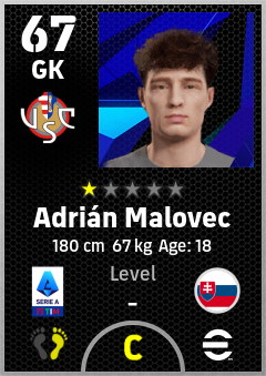 . Adrián Malovec is a Goalkeeper footballer from Slovakia who plays for Cremona Gr in eFootball 2026.