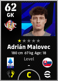 . Adrián Malovec is a Goalkeeper footballer from Slovakia who plays for Cremona Gr in eFootball 2026.