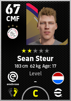 . Sean Steur is a Center Midfielder footballer from Netherlands who plays for Ajax in eFootball 2026.