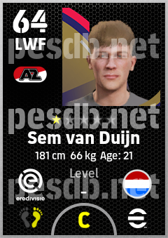. Sem Van Duijn is a Left Wing Forward footballer from Netherlands who plays for Az in eFootball 2026.