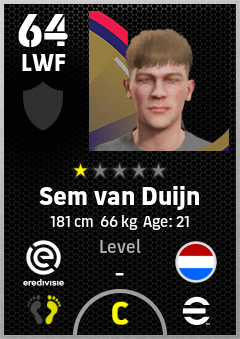 . Sem Van Duijn is a Left Wing Forward footballer from Netherlands who plays for Telstar in eFootball 2026.