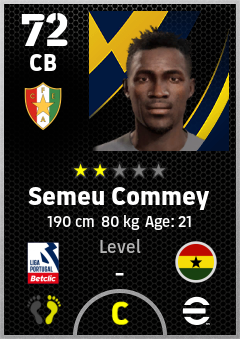 . Semeu Commey is a Center Back footballer from Ghana who plays for Cf Estrela Da Amadora in eFootball 2026.