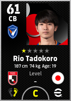 . Rio Tadokoro is a Center Back footballer from Japan who plays for V-Varen Nagasaki in eFootball 2026.