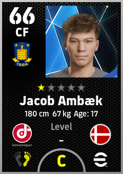 . Jacob Ambæk is a Center Forward footballer from Denmark who plays for Brøndby Gb in eFootball 2026.