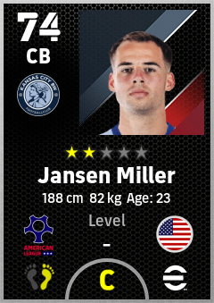 . Jansen Miller is a Center Back footballer from United States who plays for Kansas City Bw in eFootball 2026.