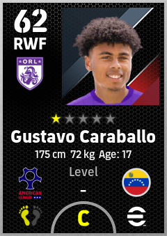 . Gustavo Caraballo is a Right Wing Forward footballer from Venezuela who plays for Orlando Pw in eFootball 2026.