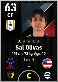 . Sal Olivas is a Center Forward footballer from United States who plays for Philadelphia By in eFootball 2026.