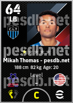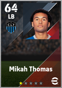 . Mikah Thomas is a Left Back footballer from United States who plays for Charlotte Bbgw in eFootball 2026.