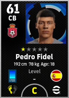 . Pedro Fidel is a Center Back footballer from Spain who plays for Almería Rb in eFootball 2026.