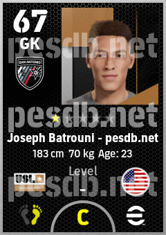 . Joseph Batrouni is a Goalkeeper footballer from United States who plays for San Antonio Fc in eFootball 2026.