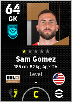 . Sam Gomez is a Goalkeeper footballer from United States who plays for Monterey Bay F.c. in eFootball 2026.