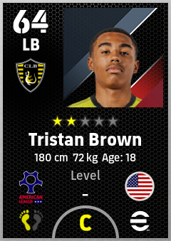 . Tristan Brown is a Left Back footballer from United States who plays for Columbus By in eFootball 2026.