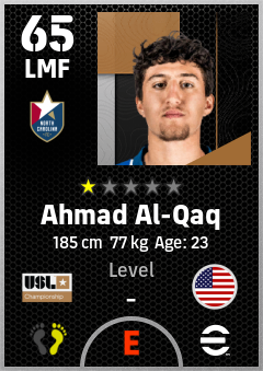 . Ahmad Al-Qaq is a Left Midfielder footballer from United States who plays for North Carolina Fc in eFootball 2026.
