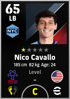 . Nico Cavallo is a Left Back footballer from United States who plays for New York City B in eFootball 2026.