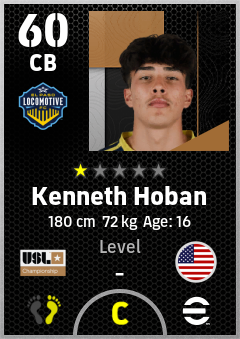 . Kenneth Hoban is a Center Back footballer from United States who plays for El Paso Locomotive Fc in eFootball 2026.