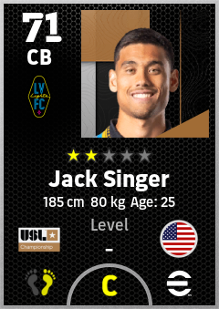 . Jack Singer is a Center Back footballer from United States who plays for Las Vegas Lights Fc in eFootball 2026.