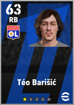 . Téo Barišić is a Right Back footballer from Croatia who plays for Olympique Lyonnais in eFootball 2026.