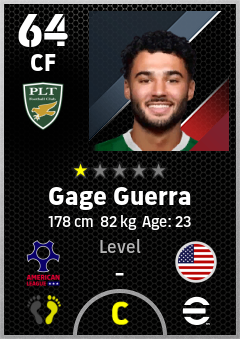 . Gage Guerra is a Center Forward footballer from United States who plays for Portland Gw in eFootball 2026.