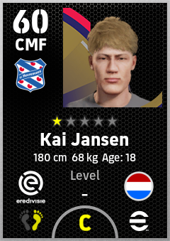 . Kai Jansen is a Center Midfielder footballer from Netherlands who plays for Sc Heerenveen in eFootball 2026.