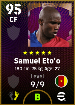 . Samuel Eto'o is a Center Forward footballer from Cameroon who plays for Free in eFootball 2026.