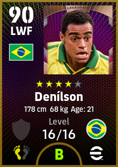 . Denílson is a Left Wing Forward footballer from Brazil who plays for Brazil in eFootball 2026.