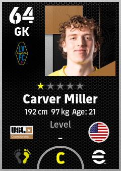 . Carver Miller is a Goalkeeper footballer from United States who plays for Las Vegas Lights Fc in eFootball 2026.