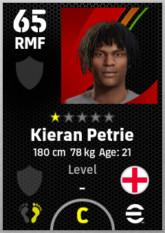 . Kieran Petrie is a Right Midfielder footballer from England who plays for Free in eFootball 2026.