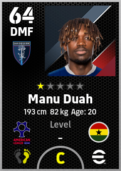 . Manu Duah is a Defensive Midfielder footballer from Ghana who plays for San Diego Bw in eFootball 2026.