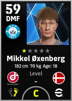 . Mikkel Øxenberg is a Defensive Midfielder footballer from Denmark who plays for Silkeborg Rh in eFootball 2026.
