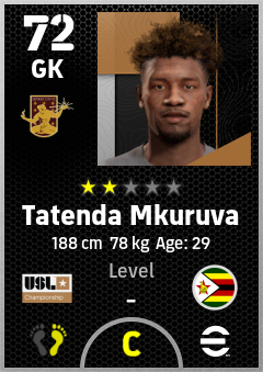 . Tatenda Mkuruva is a Goalkeeper footballer from Zimbabwe who plays for Detroit City Fc in eFootball 2026.