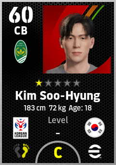 . Kim Soo-Hyung is a Center Back footballer from Korea Republic who plays for Jeonju G in eFootball 2026.