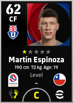. Martín Espinoza is a Center Forward footballer from Chile who plays for Santiago A in eFootball 2026.