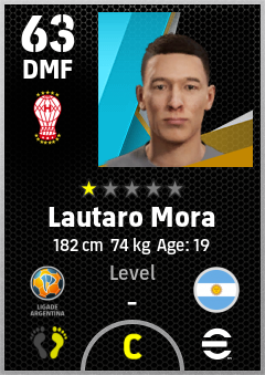 . Lautaro Mora is a Defensive Midfielder footballer from Argentina who plays for Parque Patricios R in eFootball 2026.