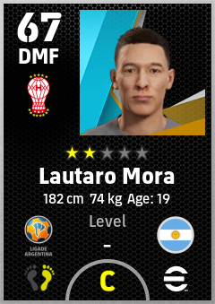 . Lautaro Mora is a Defensive Midfielder footballer from Argentina who plays for Parque Patricios R in eFootball 2026.