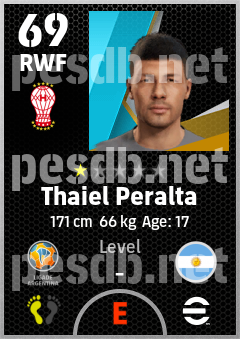 . Thaiel Peralta is a Right Wing Forward footballer from Argentina who plays for Parque Patricios R in eFootball 2026.