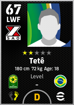 . Tetê is a Left Wing Forward footballer from Brazil who plays for São Paulo F.c. in eFootball 2026.